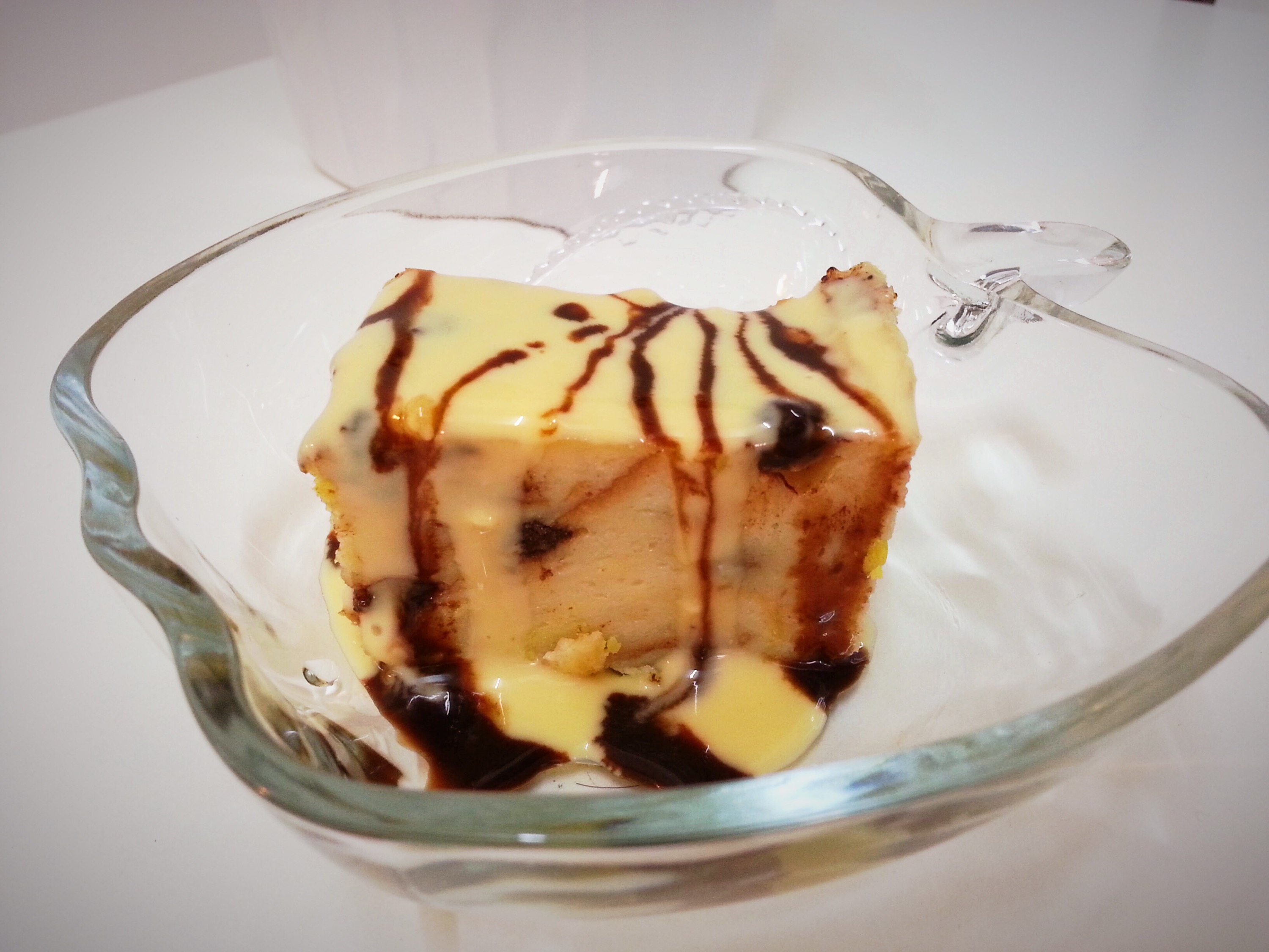 - Dah siap!! Boleh di hidangkan semasa panas@sejuk. Saya lebih suka yang sejuk. Letak dalam peti ais. Kalau nak lagi best, boleh jugak tuangkan coklat syrup sikit kat atas puding. ?