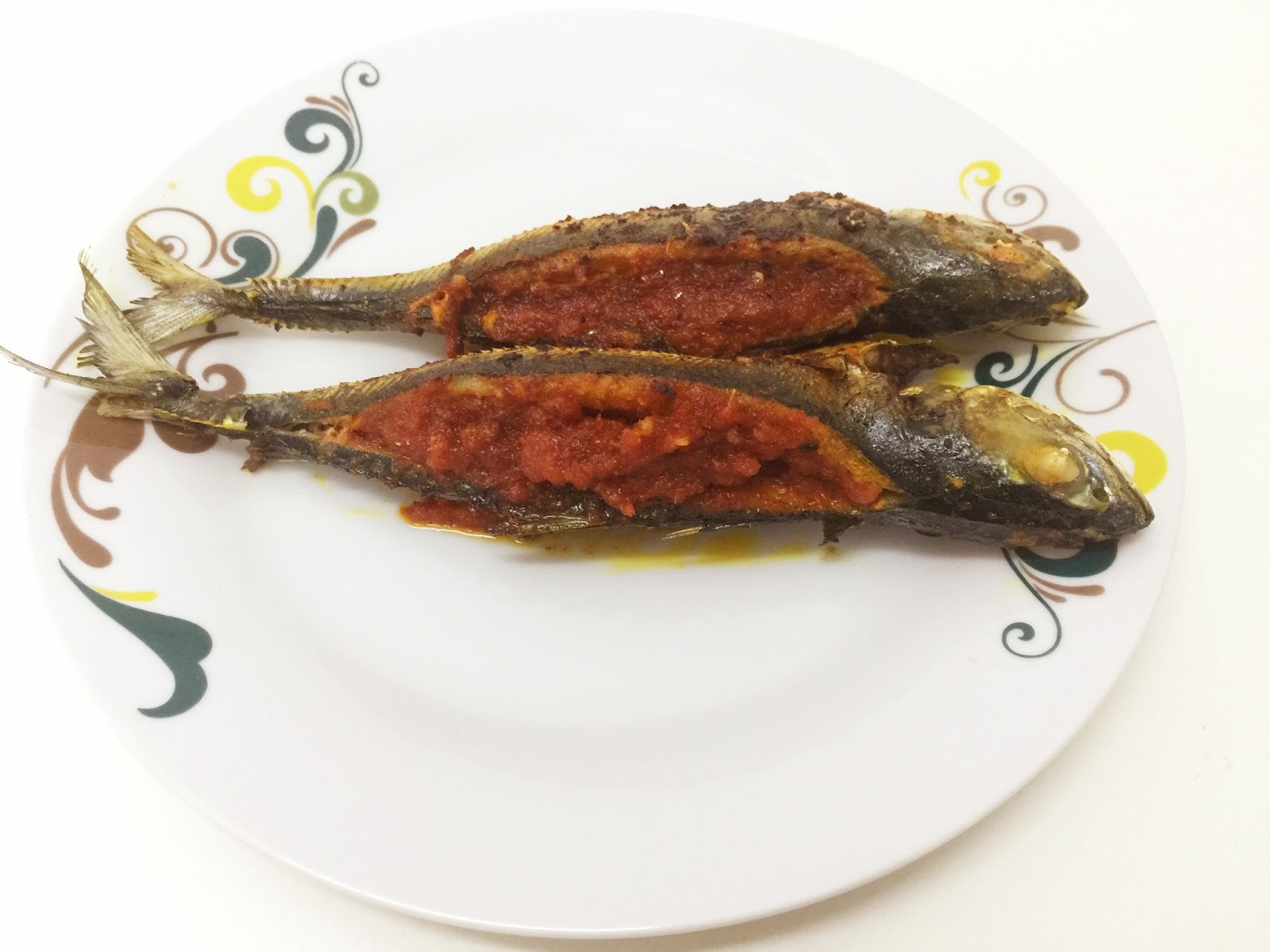- Setelah sambal sejuk, sumbatkan sambal dalam belakang ikan yang telah kita belah tadi. Sumbat di kedua-dua bahagian belahan.
