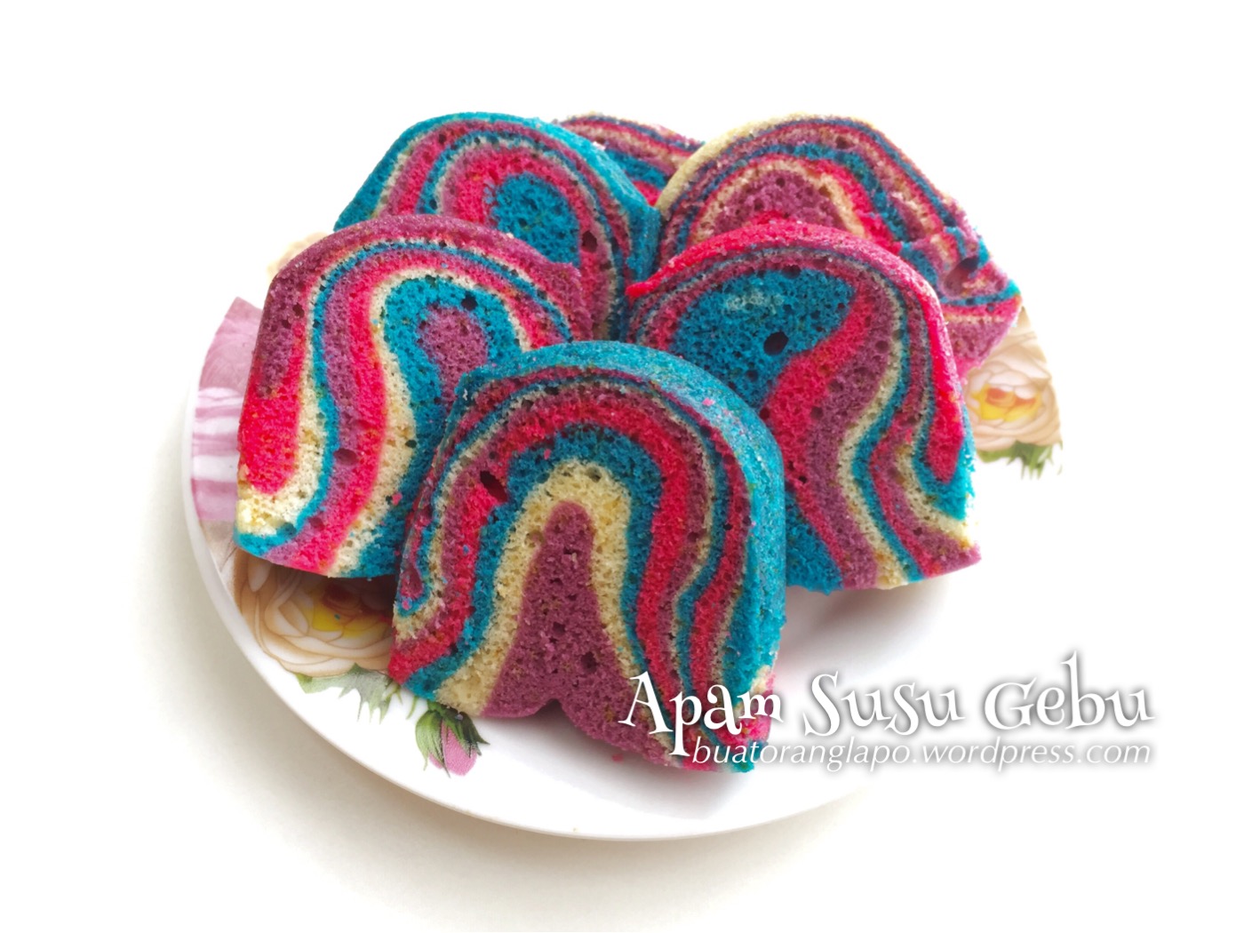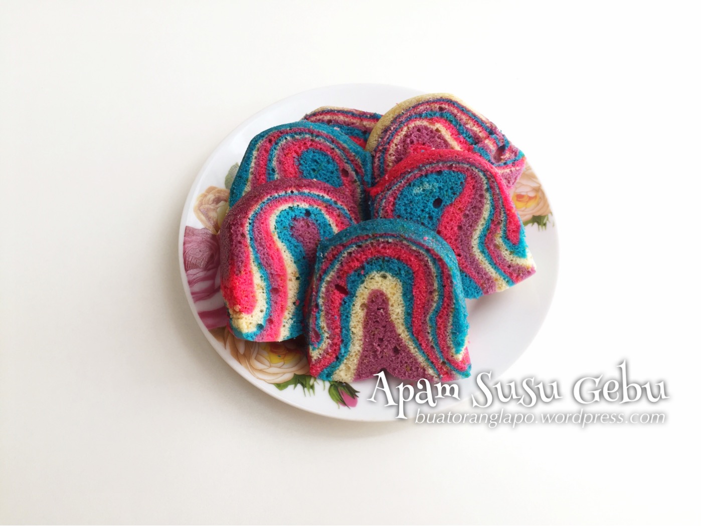 Apam susu pelangi yang gebu dan lembut untuk minum petang. Resepi ni saya jumpa kat Facebook. Ramai jugak yang share resepi yang sama dengan kejayaan apam masing-masing. Then saya pun try la jugak. Semudah ABC.. Hehe.. Bahan-bahan pun simple je. Guess what!! My husband loves it. Siap cakap nanti buat lagi.. hehe.. Ok let's check it out..