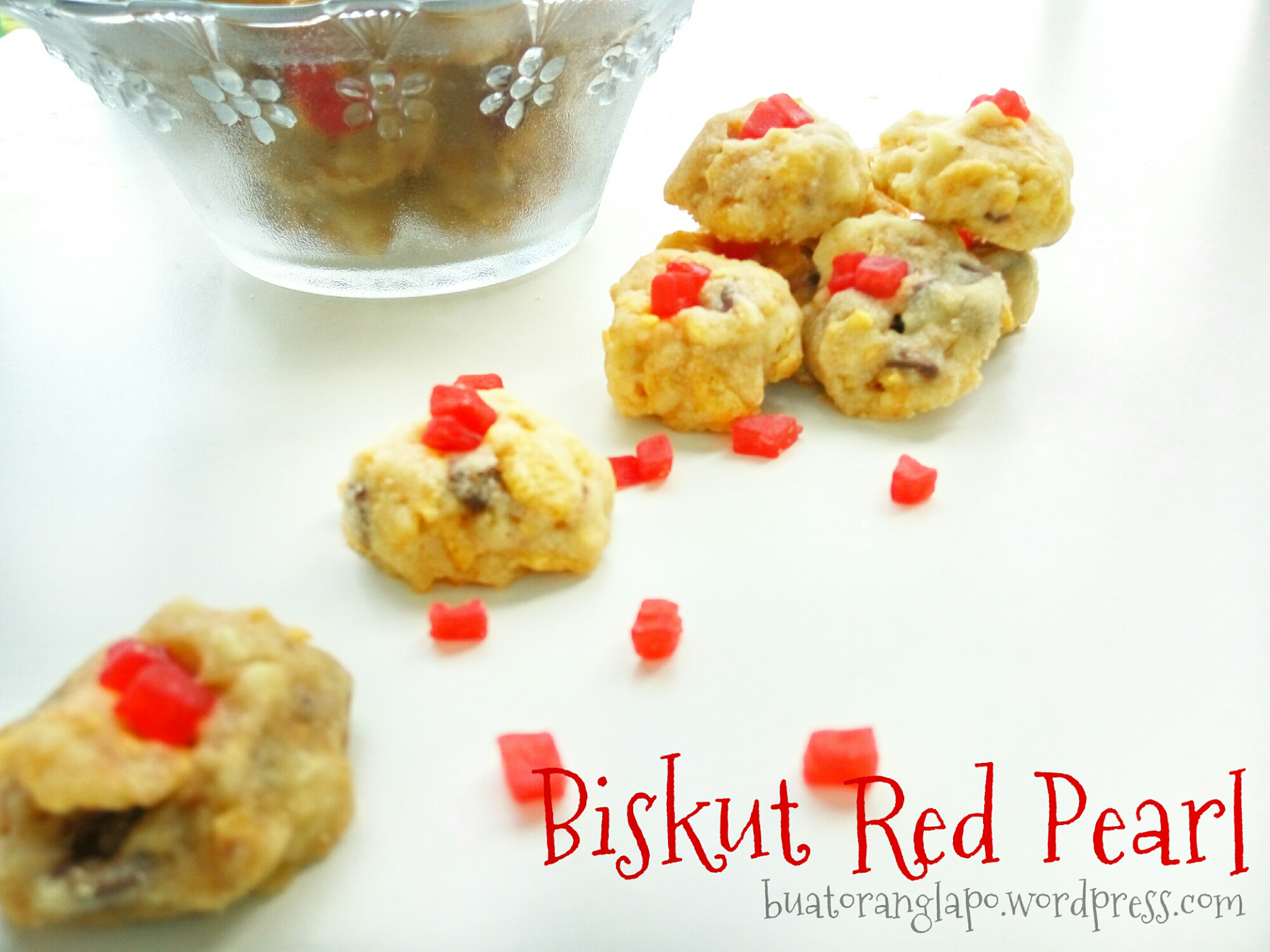 Assalamualaikum. Lagi seminggu nak raya ni jom kita pakat buat biskut raya pulak. Kali ni saya nak kongsi resepi biskut red pearl @ red pearl cookies. Mungkin ramai yang tak pernah dengar nama biskut ni. Saya sendiri pun tak pernah dengar nama biskut ni sebelum ni. Hehe.. Ada sekali saya nampak orang kongsi resepi biskut ni kat Facebook(tak ingat nama). Tengok bahan-bahan untuk buat biskut ni sedap-sedap. Cara nak buat pun senang sangat. Lepas tu saya cuba Google cari resepi red pearl. Dalam banyak-banyak resepi tu saya rasa resepi ni yang paling sedap.